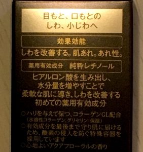レチノールはターンオーバー促進、ヒアルロン酸を増やす保湿作用など、本当に高機能な成分ですので、部分用に使うだけではもったいないかなと思います。この資生堂のクリームは、基本的には部分用として販売されています。